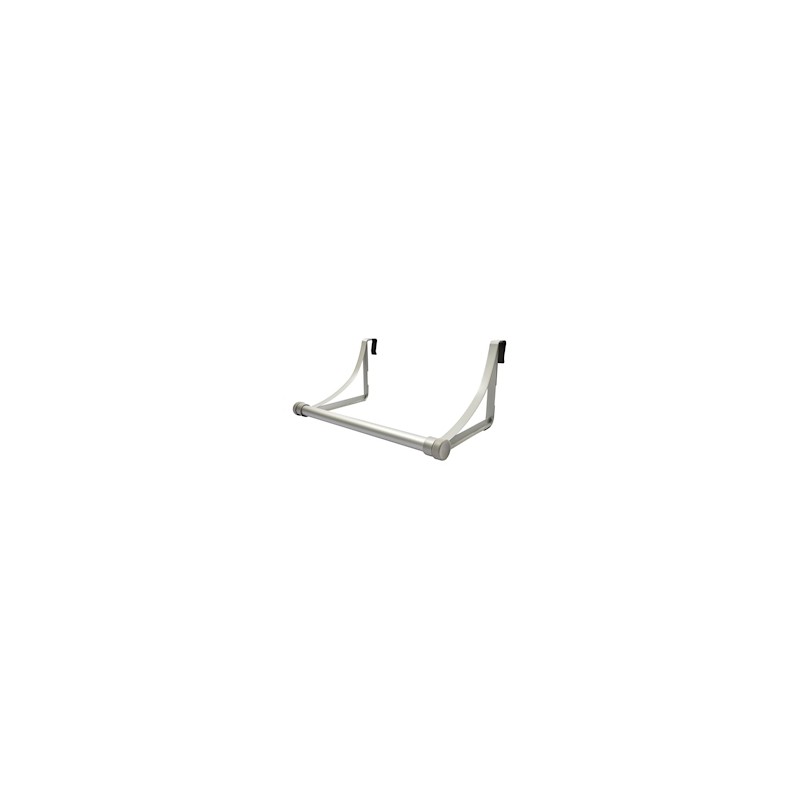 Barra valet Loft, útil para colgar batas, ropa o cualquier prenda y accesorio de uso personal en las puertas. Fabricada en acero resistente con acabado en color plata satinado. Tiene un diseño moderno que la vuelve práctica y elegante, es compatible con cualquier decoración. Sus dimensiones son 48.5 x 30 x 20 cm, con capacidad máxima de carga de 3.6 kg.