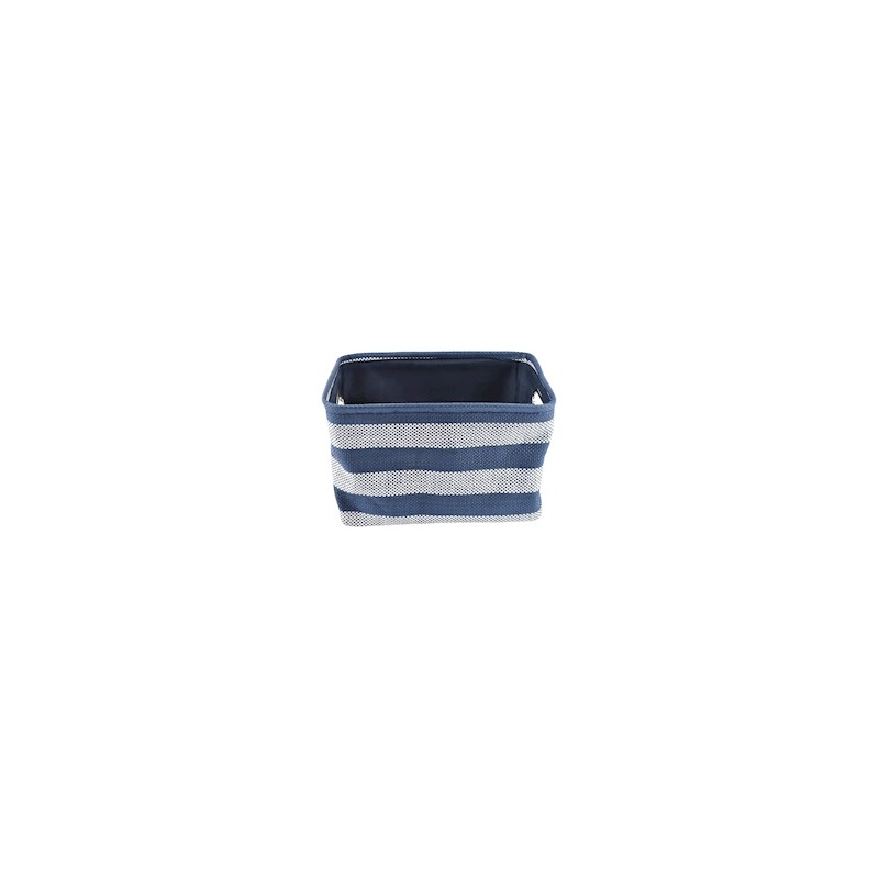 Gaveta grande Home & Home, almacena y organiza artículos personales u objetos del hogar. En sus lados laterales tiene agarraderas metálicas para poder transportarla con sencillez. Su exterior está elaborado con fibra de papel y su interior con poliéster que la hacen una pieza ligera y no permiten que se deforme. Su diseño en forma de tejido en color azul y blanco lo hacen un artículo llamativo. Tiene las dimensiones 38 x 26 x 24 cm.