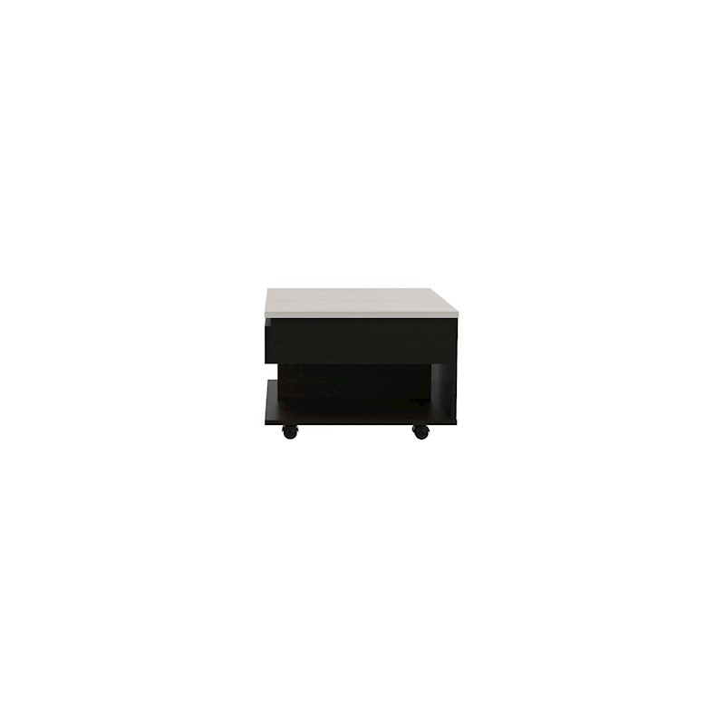 Mesa auxiliar multifuncional en tamaño de 39.1 x 50 x 55 cm; elaborada de melamina de alta resistencia color chocolate y marfil con un espesor de 15 mm. Puede emplearse como escritorio, mesa para cenar frente al televisor y para guardar libros, revistas o laptop. Cuenta con ruedas para facilitar su desplazamiento. Es fácil de armar y no requiere de herramientas para su instalación. Ahorra espacio y hace juego con los demás productos de la línea para la sala o estudio como bares, libreros, mesas de tv y mesas de centro.