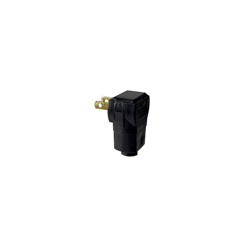 Conector angular no polarizado de 125 volts negro Leviton, su uso complementa las instalaciones eléctricas para realizar uniones permanentes o desmontables de dos cables. Su uso facilita la extensión de clavijas, es ligero y resistente; cuenta con un cuerpo plástico de gran resistencia al impacto que cubre adecuadamente el interior. Su sistema de ajuste con tornillo de ensamble facilita la entra del cable para extensión. Cuenta con 2 polos y 2 hilos.