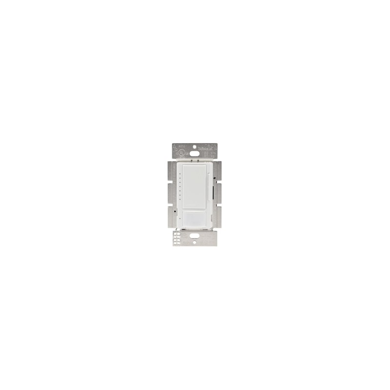 Sensor con atenuador digital de pared Maestro para aplicación unipolar, de escalera (3 vías) o ubicación múltiple Lutron, brinda un ambiente agradable en espacios interiores como habitaciones, baños, salas, cocheras, lavanderías y pasillos. Puede utilizarse en focos LED atenuables de 150 watts o incandescentes y halógenos de 600 watts. Se encuentra elaborado con un regulador de plástico compatible con cualquier decoración, sistema digital de botones que ayuda a aumentar o disminuir la intensidad de la luz, apagador que permite el control manual de las luces y sensor de movimiento con tecnología de sensor XCT para que la luz permanezca encendida mientras se encuentra ocupada la habitación, además detecta la luz del día. Trabaja con una corriente de 120 volts, tiene una cobertura de 81 m2 (9 x 9 m), campo visual de 180 grados, temporizador ajustable y modo opcional de desocupación. Contiene instructivo de instalación; la placa decorativa se vende por separado.