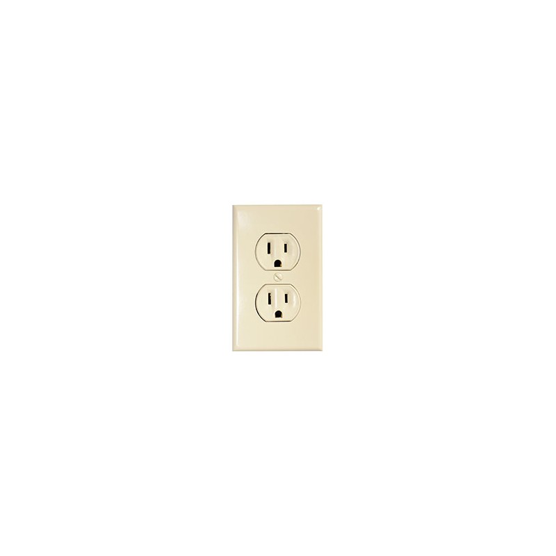 Contacto dúplex con placa y conexión a tierra, 15 amperes 125 volts. Protege la instalación de sobre cargas o cortos circuitos. Por su gran resistencia, es empleado en uso rudo para máxima retención de la clavija. Incluye tornillos para facilitar el proceso de instalación. Fabricado con materiales de gran calidad que le brinda una larga vida útil. Su uso reemplaza cualquier contacto doble a tierra de 15 amperes 125 volts.