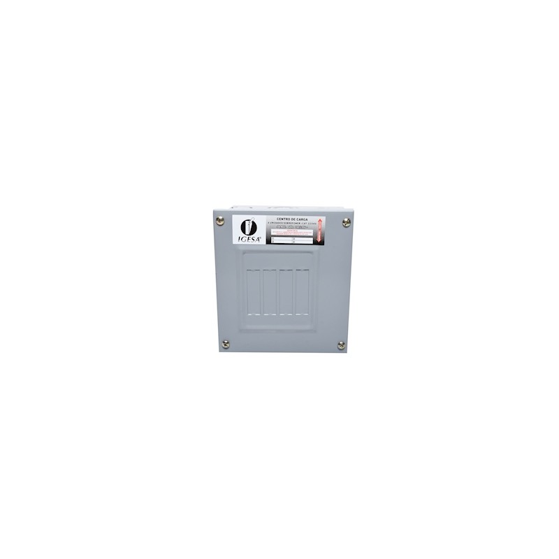 Centro de carga de 4 polos IGESA, 70 amperes, 120/240 volts, compatible con interruptores de 3/4 de pulgada (tipo QO). Gabinete de sobreponer fabricado en lamina de acero tipo NEMA 1 y pintura electrostática para uso interior, cuenta con terminales bimetálicas para usarse con conductor de cobre o aluminio, con capacidad de cable calibre 14 AWG (mínimo) a 1/0 (máximo). Cuenta con certificado NOM ANCE.