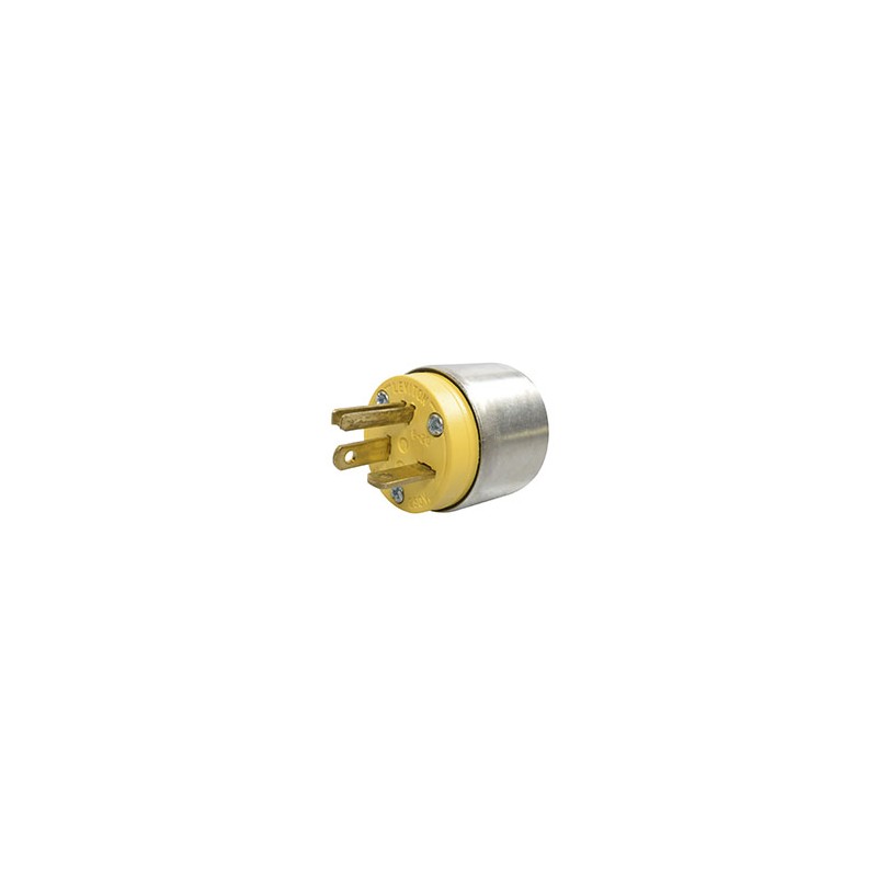 Clavija redonda de acero, permite a un aparato eléctrico tener un enchufe de uso industrial y poder conectarlo a una corriente de 250 volts y 20 amperes NEMA 6-20P. Está fabricada con un enchufe de 3 polos y cuenta con una abrazadera para mayor estabilidad del cable que se le ha conectado. Su cuerpo es de metal resistente que evita descargas al momento de utilizarlo.
