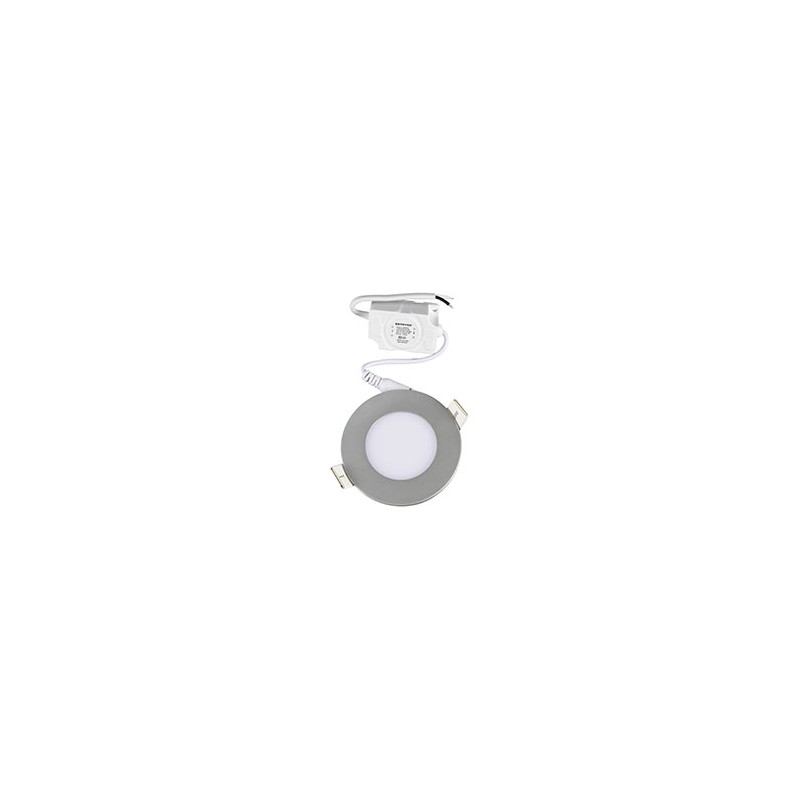 Luminario Ultraplano de Estévez de 3 pulgadas, está fabricado en aluminio con acabado en níquel para tener un mejor estilo y decoración. Proporciona una luz neutra en temperatura de color de 4000 Kelvin, de 4 watts y 200 lúmenes; cuenta con LED tipo SMD integrado y Driver incluido para alimentación de 127 V. Incluye guía de instalación para empotrarlo fácilmente en techos y falso plafón.