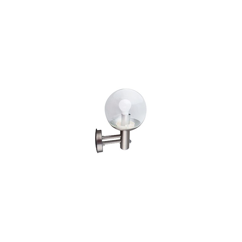 Lámpara de Pared de 100 watts Decor Living, es útil para exteriores, cuenta con esfera de vidrio transparente y base resistente al agua con grado de protección IP44 con acabado de acero inoxidable. Su ángulo de detección de movimiento es de 10 metros en un rango de 110 grados, haciéndola eficiente para las entradas, garajes, patios y más. Es de fácil instalación, incluye 2 tornillos de máquina, 2 tuercas de cable y dos perillas, compatible con bombilla E26 no incluida.